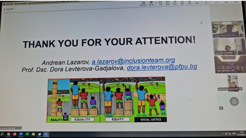 Prof. PhD Dora Levterova-Gadjalova – the TEACH-PHEN’s project coordinator together with Andrean Lazarov – CEO of Bulgarian Inclusion Support Team (project partner) gave a speech during the 3rd ICASF International Conference on Advanced Sustainable Futures.