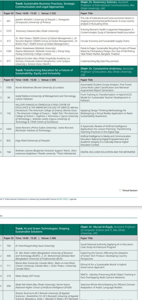 Participation at the ICASF – 3rd International Conference on Advanced Sustainable Futures – 10-11 December 2025, Abu Dhabi, UAE